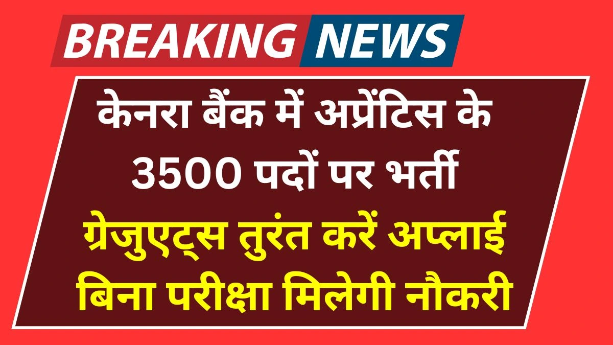 A1: केनरा बैंक ने अपनी अप्रेंटिसशिप स्कीम के तहत कुल 3500 अप्रेंटिस पदों पर भर्ती का नोटिफिकेशन जारी किया है।