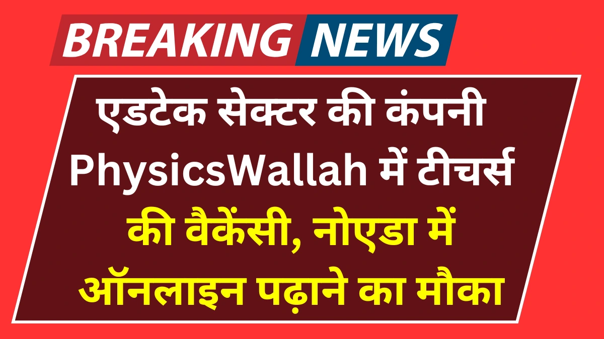 PhysicsWallah Recruitment: एडटेक सेक्टर की जानी-मानी कंपनी PhysicsWallah (PW) ने टीचर्स के लिए नई भर्ती प्रक्रिया शुरू की है। कंपनी ने हिंदी मीडियम के CUET परीक्षा के छात्रों को पढ़ाने के लिए ऑनलाइन शिक्षकों की वैकेंसी निकाली है। यह मौका देशभर के शिक्षकों के लिए है, जो शिक्षा क्षेत्र में करियर बनाना चाहते हैं और ऑनलाइन माध्यम से छात्रों को पढ़ाना पसंद करते हैं। इस पोस्ट के लिए आवेदन प्रक्रिया शुरू हो चुकी है, और चयनित उम्मीदवारों को नोएडा में कंपनी के मुख्यालय से काम करना होगा।