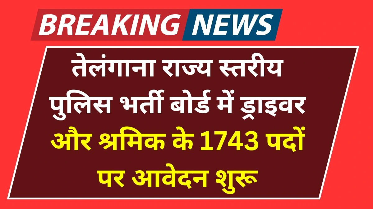 Telangana Police Recruitment 2025: तेलंगाना राज्य स्तरीय पुलिस भर्ती बोर्ड (TSLPRB) ने बड़ी संख्या में भर्ती की घोषणा की है। बोर्ड ने ड्राइवर और श्रमिक के कुल 1743 पदों पर भर्ती के लिए नोटिफिकेशन जारी किया है। इस भर्ती के लिए आवेदन प्रक्रिया 8 अक्टूबर से शुरू हो चुकी है। इच्छुक उम्मीदवार आधिकारिक वेबसाइट पर जाकर आवेदन कर सकते हैं।